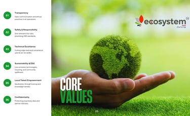 At ecoSystem, our values are not statements — they are commitments we live by.