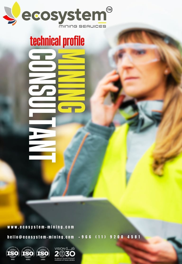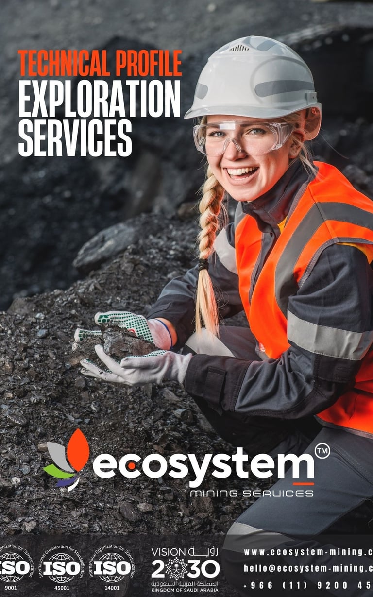 Our approach is built on ISO 9001, 14001, 45001 management systems and guided by the principles of Zero Harm and Maximum Impact. With a multidisciplinary team combining international and regional experience, Ecosystem Mining brings clarity, reliability, and innovation to every project — ensuring that the Kingdom’s mineral wealth is developed responsibly and efficiently, turning geological potential into measurable value for investors, communities, and the nation.